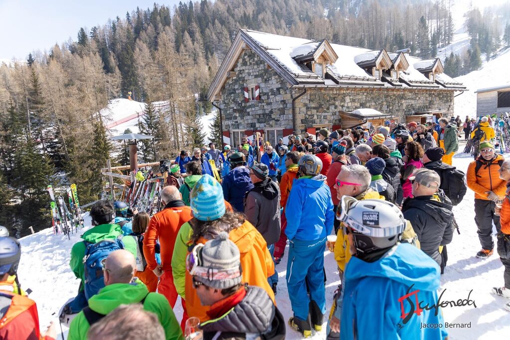 These are the essential information - but there is much more to say about it - about the Scufoneda, the festival now in its 29th edition, which celebrates free-heel skiing. The event, organised by the very active association of the "Scufons del Cogo" in Moena, led by Felice Canclini - The President - has been continuously enriched over time with new content and innovations, attracting around 400 participants over the weekend. This liveliness has contributed to its popularity, even abroad, among telemark enthusiasts, freeride lovers and those who see the mountains as the ideal place to be in contact with nature, where every turn is a return to freedom.