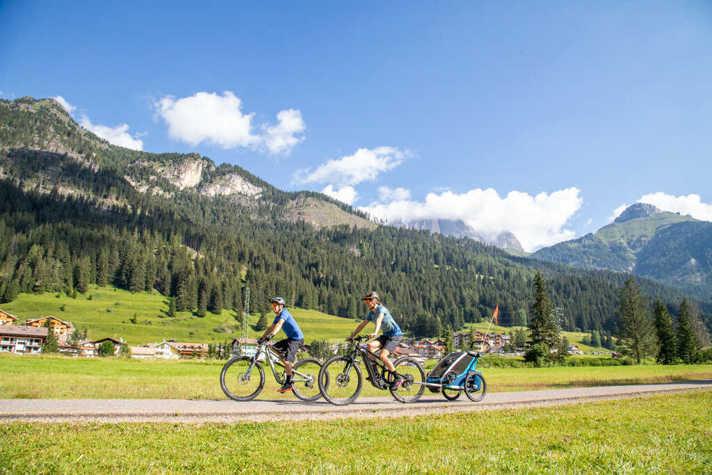 Pedalling among the Dolomites is becoming a dream also for the less trained who, here, can rely on Dolomites’ cycling route, an enjoyable itinerary of 47.5 km (3 hours is the average travel time), mostly on sloping ground. From May to October, you can saddle up and cycle from Alba di Canazei (1517 m) to Molina Fiemme (965 m), the ends of the valleys’ line, and take Fassa & Fiemme Bike Express for the return. This special 30/50-seater bus, with a trailer for your equipment, helps cyclists going back home sitting comfortably on board. Three daily rides and sixteen stops allow to get on or off in every village, depending on your starting point and your destination.