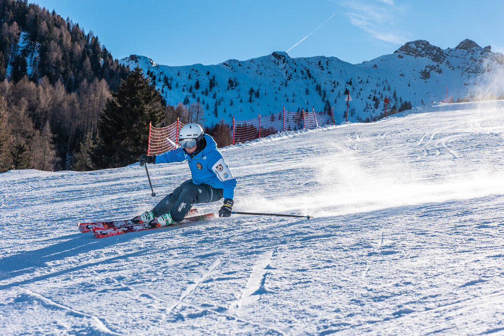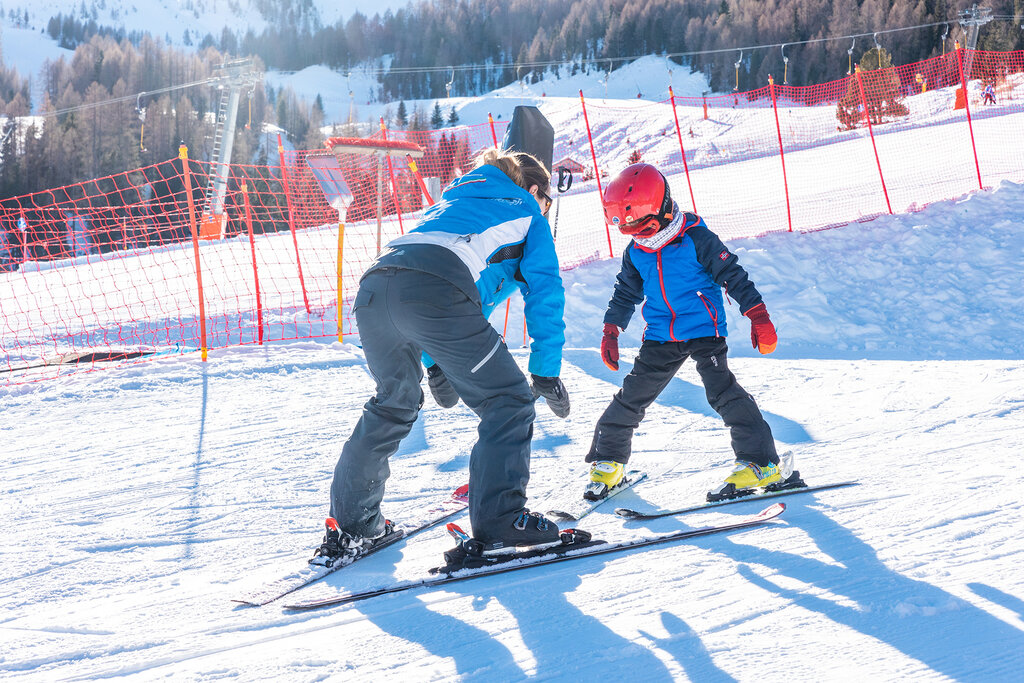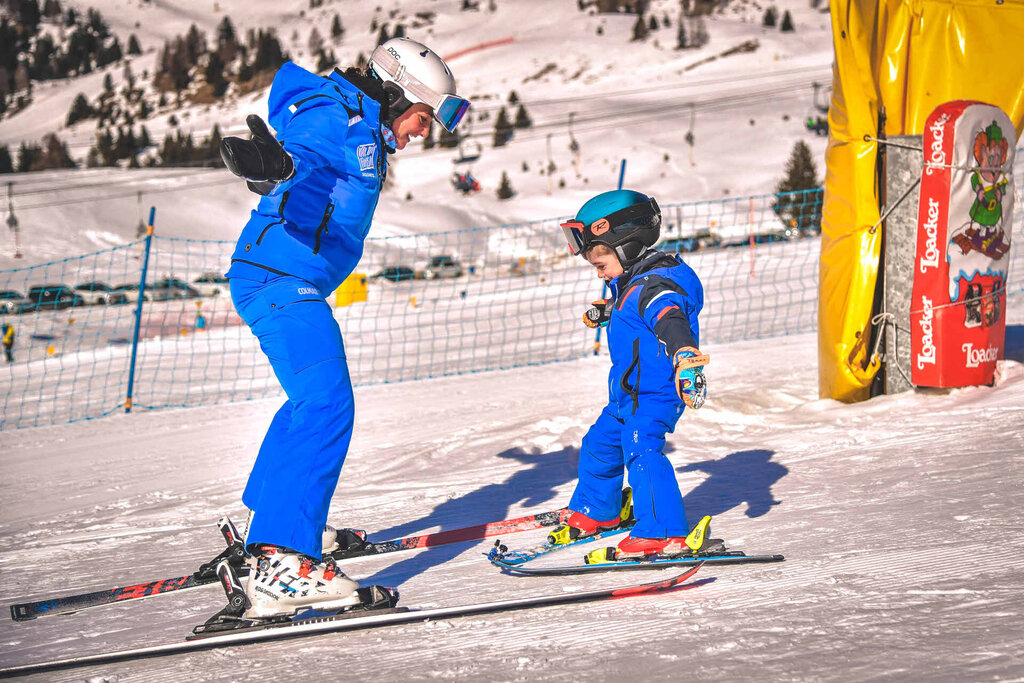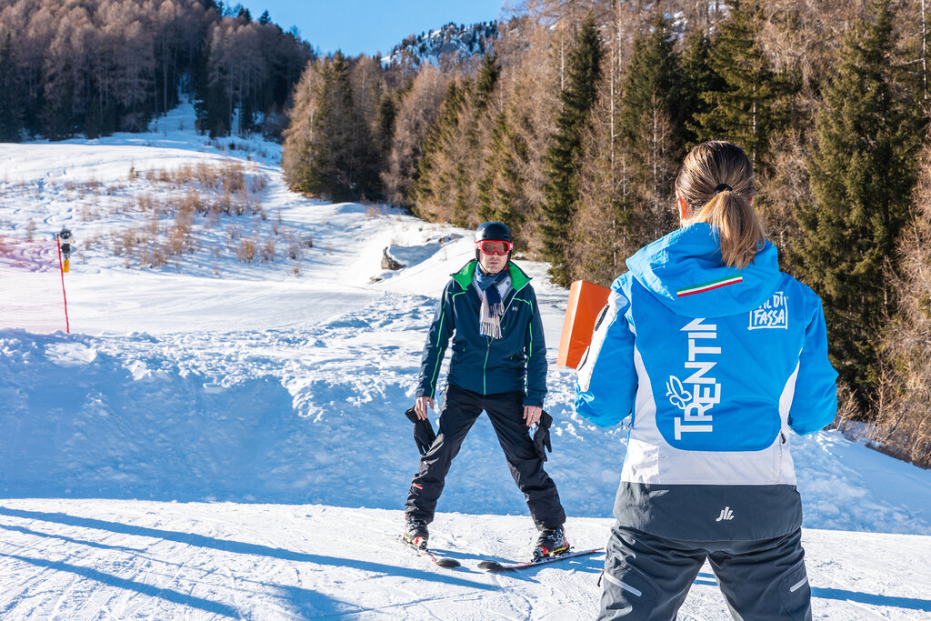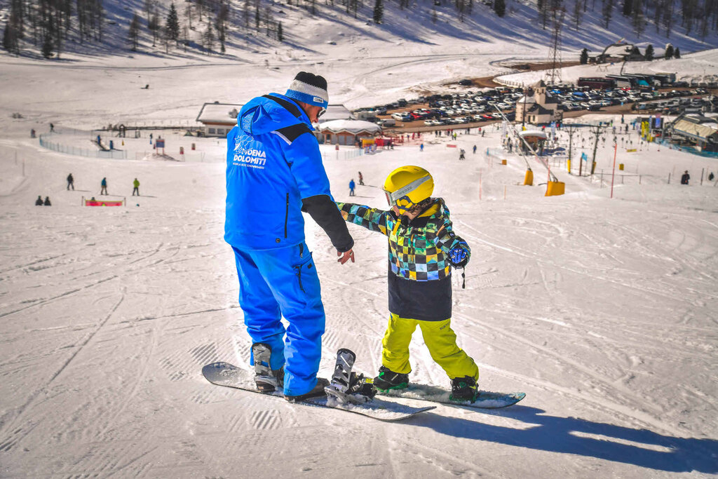 The first slides are made in the school fields at Alpe Lusia (3.5 km from Moena) or at San Pellegrino Pass (11 km from Moena), which are also easily accessible by family members/non-skiing companions.