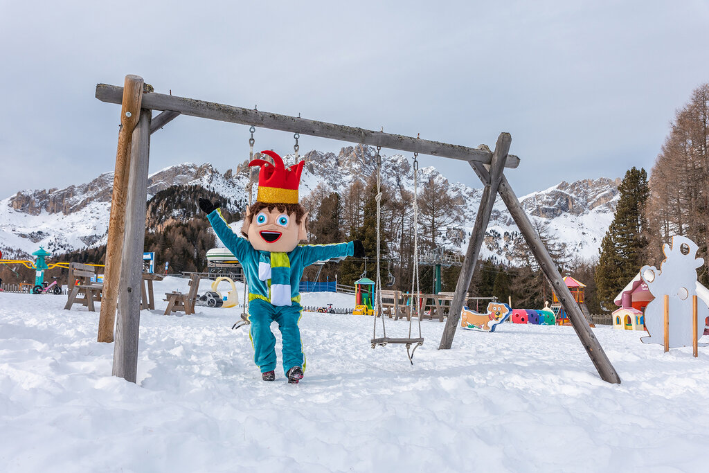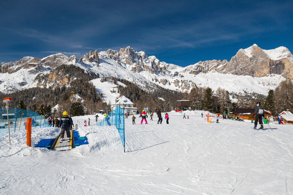 The first glides on the snow are carried out in the private school camps at Ciampedie, "Fraine" (Pera) and Carezza, equipped with comfortable treadmills for the ascent. At Ciampedie there is also a beautiful Kinderpark, where children can play and have fun outdoors, among magical castles, slides and swings. Hourly, half or full day, weekly entry (including lunch at the shelter). Animation and assistance for children from 3 years. Snowmobile excursion (surcharge). The area is also easily accessible by family members/non-skiers.