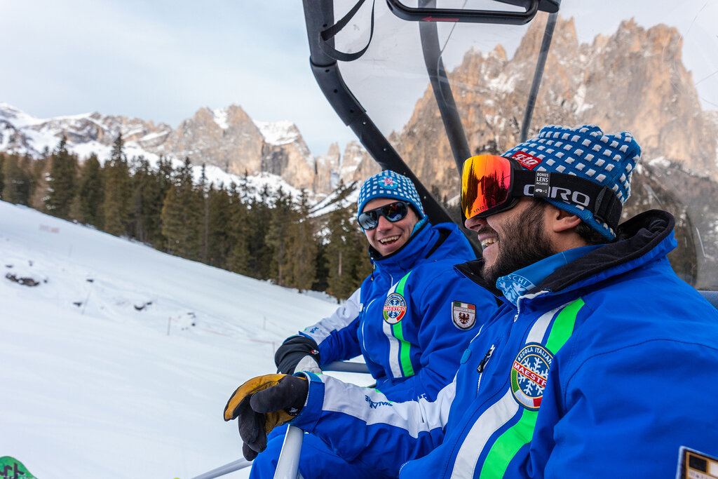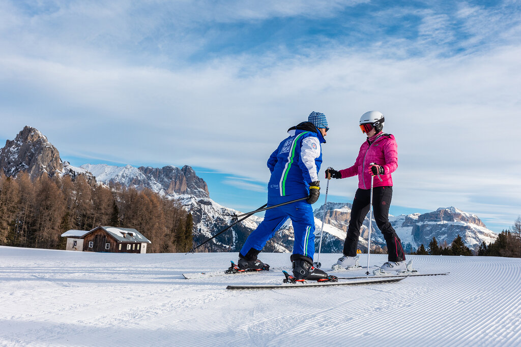 The lessons take place in the Ciampedie ski areas (meeting point at the upstream station of the cable car, phone office +39 0462 763121) and Costalunga Pass (meeting point at the downstream station of the Pra di Tori chairlift, phone office +39 353 3118043). Courses available in: Italian, English, German, French. Ski helmet and insurance are mandatory.