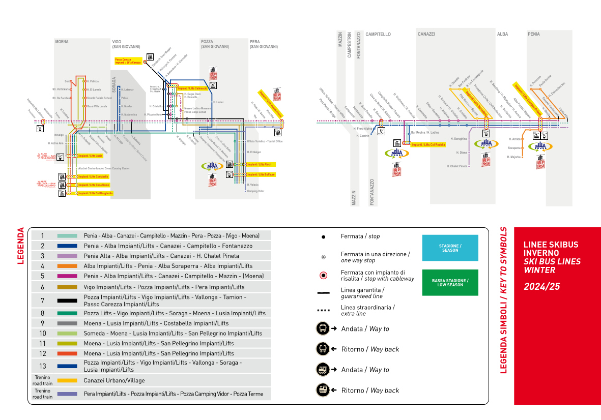 An extensive network of ski buses (paid service) makes it easy to move around Val di Fassa. Forget parking hassles and focus on what really matters: skiing a different area every day or exploring the seven picturesque Ladin villages. The service runs daily from 4 December 2025 to 6 April 2026 - the easiest, stress-free way to enjoy your holiday to the fullest!