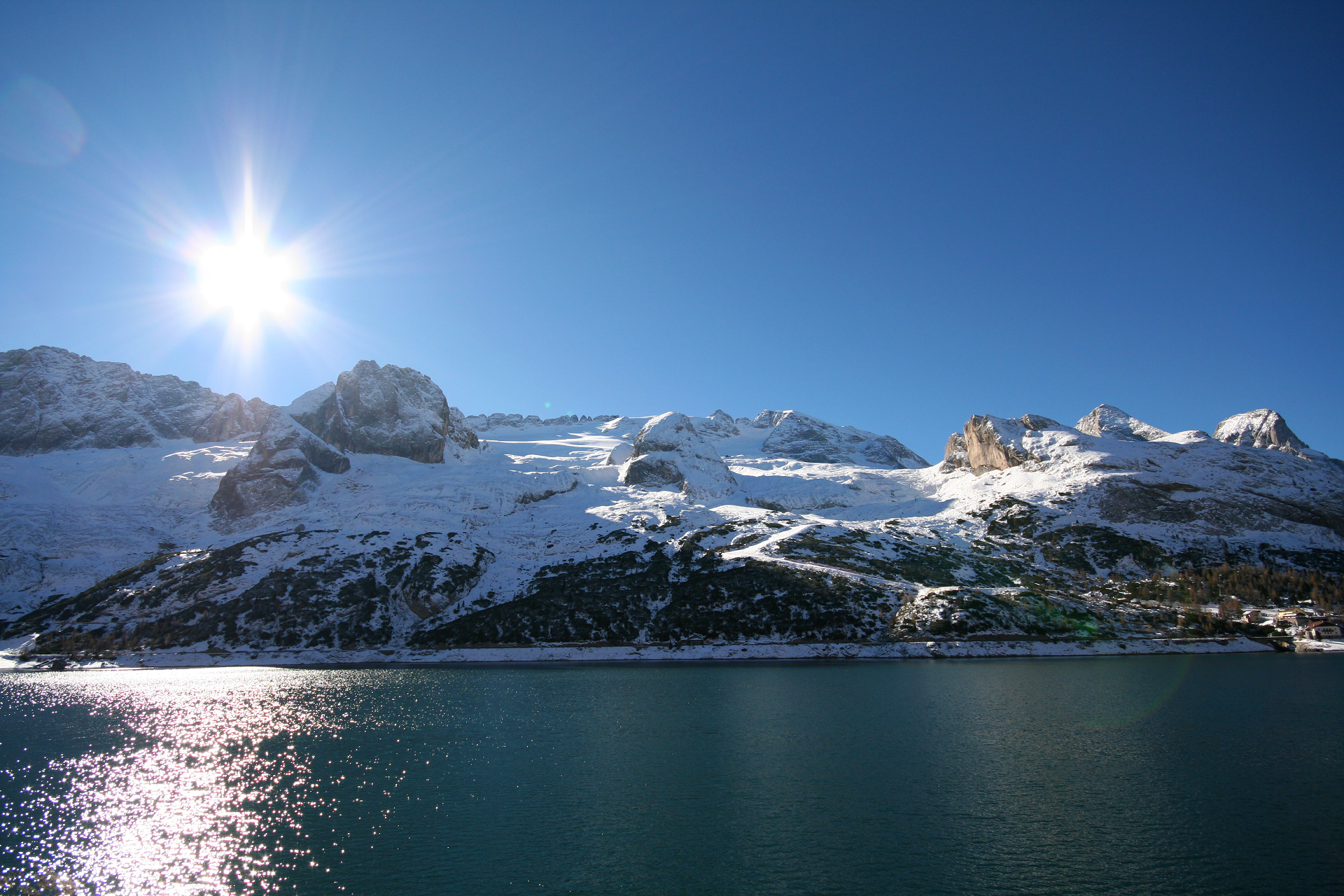 The historic ski route winds at the foot of the most spectacular peaks of the "Pale Mountains": Civetta, Pelmo, 5 Torri, Tofana, Lagazuoi, Setsass, Conturines, Sassongher, Sella and Marmolada, the Queen of the Dolomites, one of White War’s symbols with its legendary Ice City.