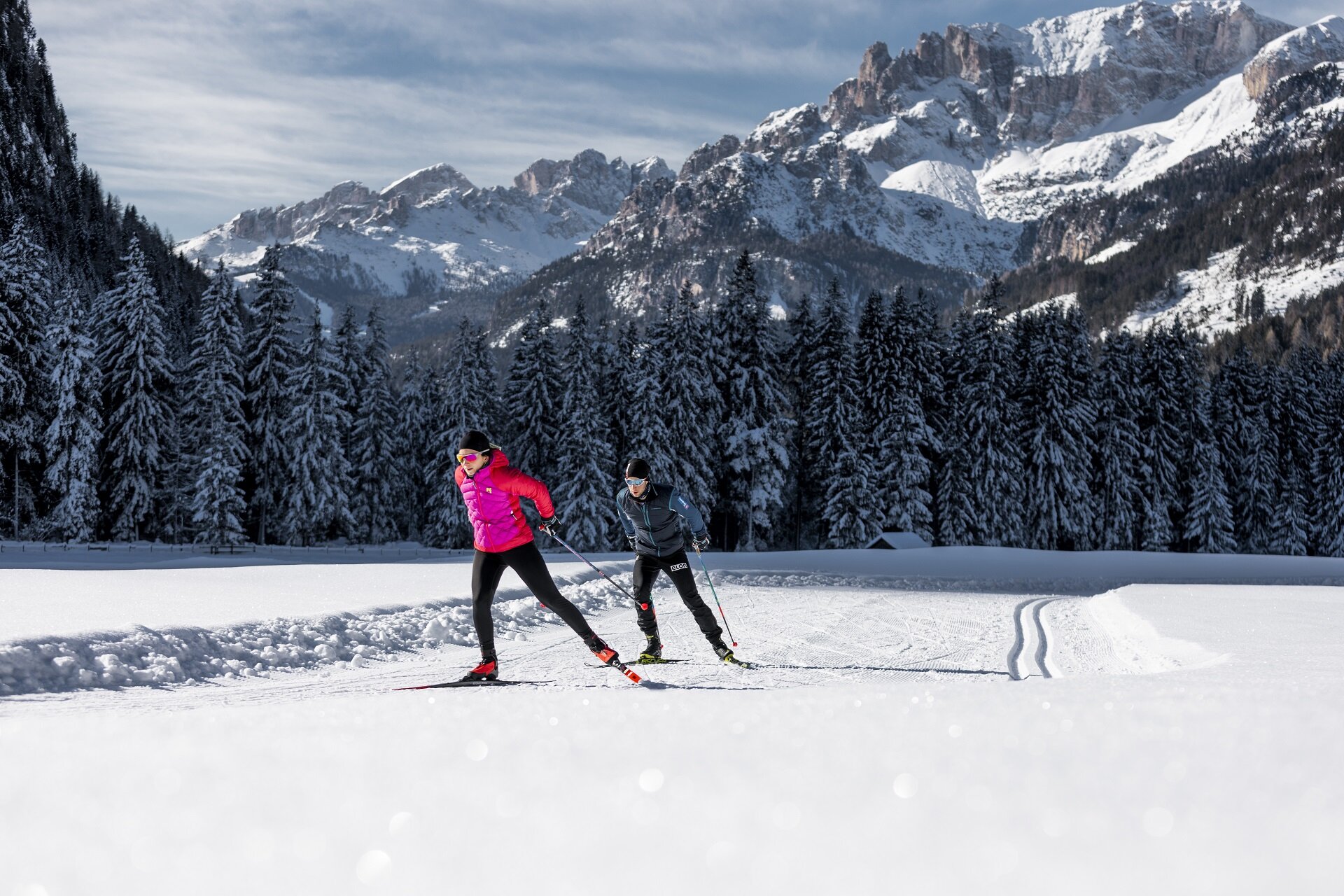 Una volta sicuri, sempre accompagnati o in autonomia, si passa poi ai tracciati aperti: piste facili, con leggeri dossi e falsipiani, che permettono di praticare questo sport senza sottoporsi a grandi fatiche o difficoltà. Durante queste sciate sarà facile lasciarsi distrarre dal magnifico panorama, offerto dai paesaggi innevati di Sella, Pordoi e Gran Vernel, che circondano e abbracciano Canazei e tutta la Val di Fassa. Si risale in direzione di Alba (anello "Ciasates") oppure, seguendo il corso del torrente Avisio, verso "Soreghes - Sot Ronch", attraverso l'ampia piana che collega Canazei a Campitello. Il silenzio nel bosco è interrotto solamente dal fruscio degli sci, che scorrono veloci sotto i piedi.