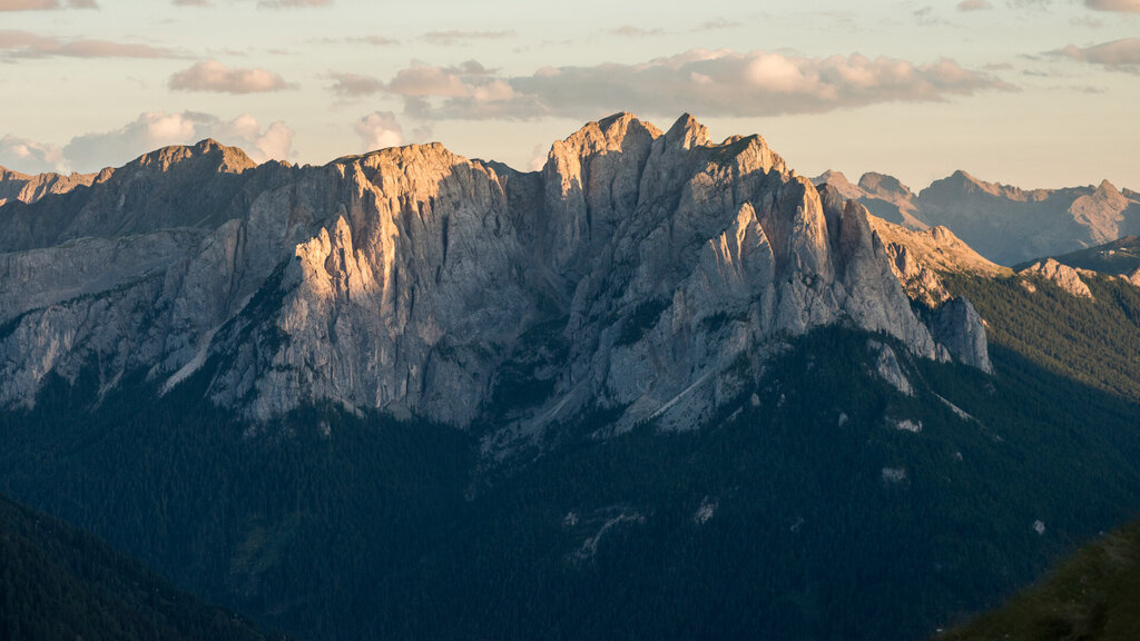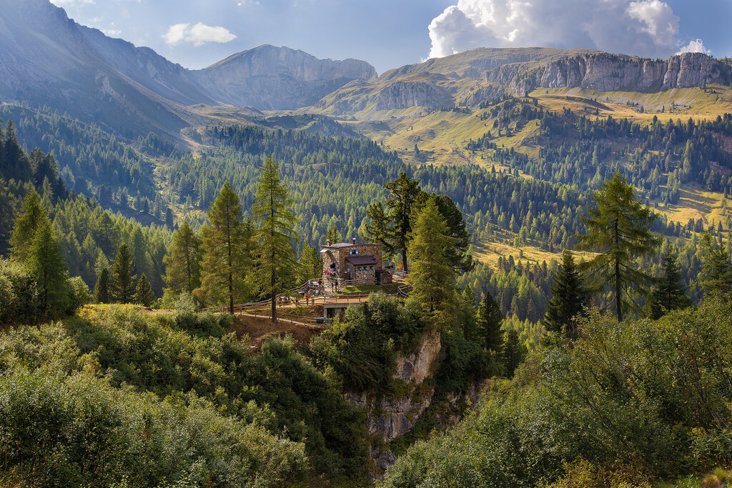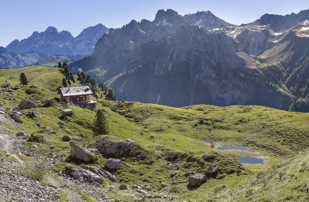 Superata la Cappella del Crocifisso, o come la chiamano i fassani la "Ciapela de la Mont de Pozza", s’infila la strada che, con pendenze a tratti anche marcate, sale in mezzo al bosco. Poi pascoli a perdita d’occhio, qualche baita isolata ed un’unica malga. Respira l’aria pura, goditi il silenzio, invidia la libertà di mucche, asini e cavalli che qui pascolano beatamente e accogli l’energia della natura! Volendo, la tua escursione termina già qui con una sosta in agritur, lasciandoti viziare da piatti veramente tipici. Malga Monzoni è un passaggio obbligato per raggiungere il Rifugio Vallaccia, Cima Undici e Cima Dodici, il Laghetto di Lagusel oppure il Rifugio Taramelli ed il Passo alle Selle, sul versante del San Pellegrino.